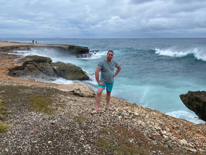 Vrijdag blijven we in de buurt en brengen we de dag op het strand in Jan Thiel door. Er zijn best veel hoge golven en het zand wordt daardoor zo onder je voeten vandaan gespoeld. We besluiten dan ook Jileyna niet mee de zee in te nemen, voordat we straks alle drie omvallen of ze de rest van de vakantie bang voor de zee wordt. Vandaag is het weer nog gekker. Het heeft de hele week al veel geregend, maar elke dag kwam toch ook de zon er wel doorheen. Vandaag is het grauw en de zee enorm onstuimig. We hebben ons prima vermaakt door het eiland wat door te crossen en op verschillende plekken naar de hoge golven te kijken. Opnieuw niet de zee in, maar hebben wel een hele leuke dag gehad.